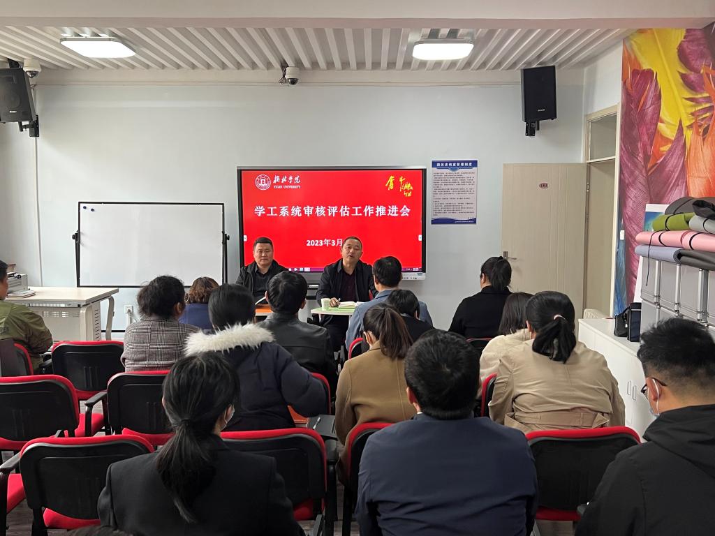 为进一步做好本科教育教学审核评估工作,认真贯彻“以评促建,以评促改,以评促管,以评促强”的工作方针,营造良好的迎评氛围,统一思想再动员,明确任务强落实,全力以赴做好bat365学工系统迎评各项工作,3月24日下午,学工部召开学工系统审核评估工作推进会。本次会议由质评办负责人主讲,各学院党总支副书记、辅导员参加会议。会议由学工部负责人主持。