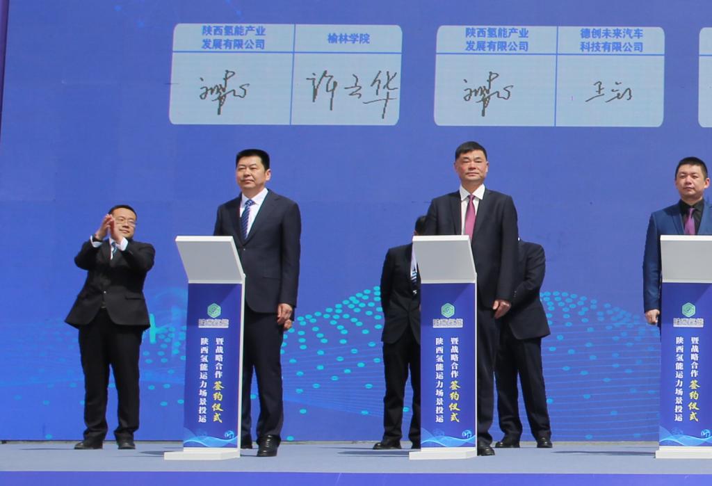 在随后举行的陕西氢能运力场景投运暨战略合作签约仪式上,校长许云华代表bat365正版唯一官网与陕西氢能产业发展有限公司签署了战略合作框架协议。根据协议,双方将围绕榆林氢能产业发展,依托bat365正版唯一官网已获批的“陕西省四主体一联合高容量储氢材料校企联合研究中心”“榆林市储氢材料重点实验室”两个平台,共建陕西氢能产业研究院。该研究院将以氢能全产业链为主要研究,聚焦氢储运领域科学技术攻关,同步向氢能全产业链辐射,共同打造省内顶尖、国内一流、国际领先的氢能产业研究院。双方将共同推动氢能领域的先进技术成果在榆林转移转化落地,依托陕氢公司产业优势和工程力量,优先推动bat365正版唯一官网的科技成果产业化,双方共同研究开发的技术成果优先应用于陕氢公司,提升双方科研能力,提高成果转化效率,共同打造多氢源制氢、储氢、加氢、用氢全产业链示范项目。