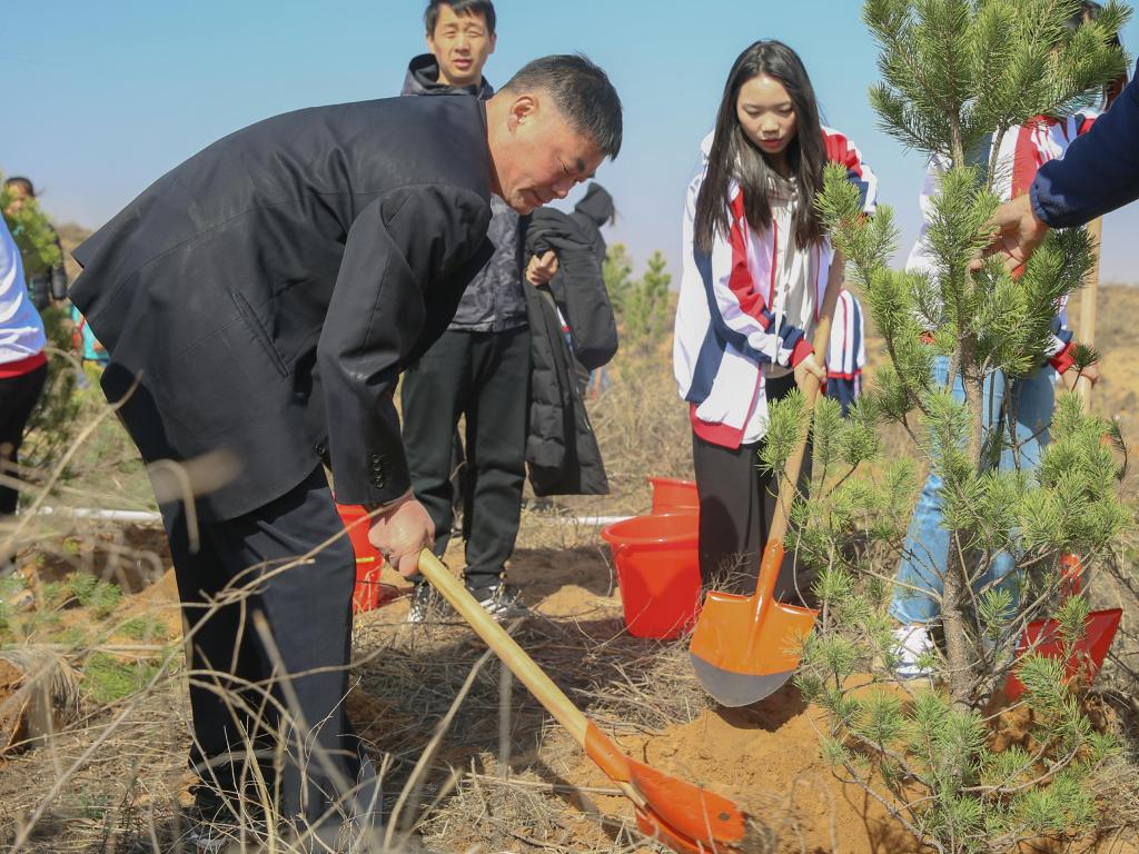人勤春来早,植绿正当时。4月8日上午,党委书记张新柱、校长许云华、党委副书记尚爱军、副校长康伟、纪委书记姜劲波,带领广大师生员工赴横山区白界镇新开沟义务植树造林基地开展义务植树活动。党政办、团委、后勤管理处等部门负责同志,各总支干部、学生代表参加植树。