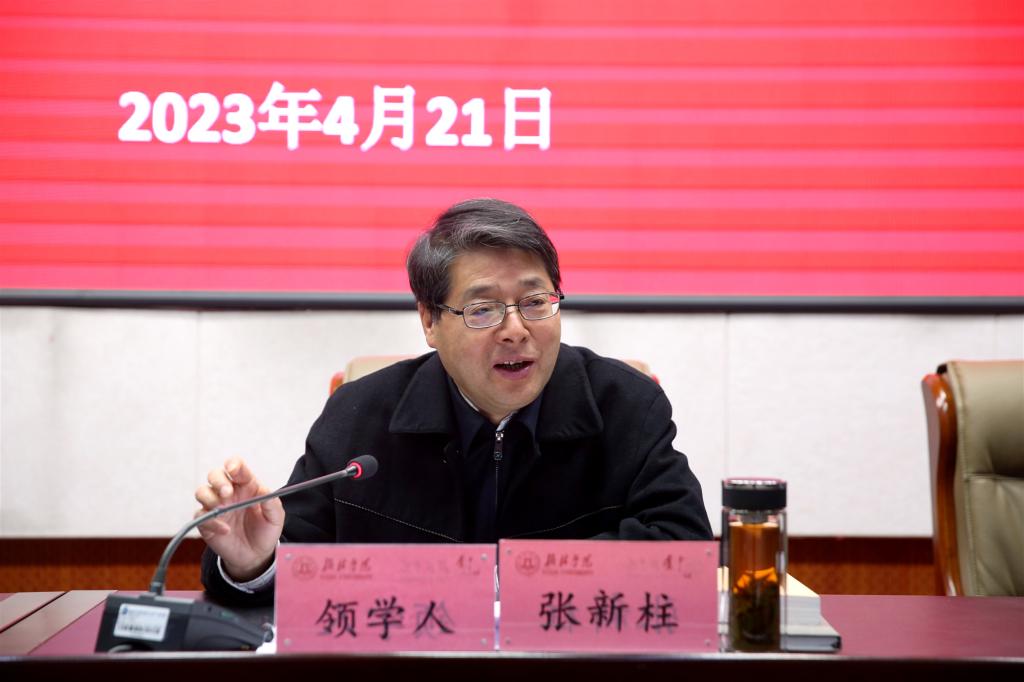 张新柱就办好主题教育读书班、加强理论学习提出了明确要求。他强调,各级党员干部要深刻认识本次为期一周的主题教育学习的刚性要求与重要意义。他指出,学校党委高度重视,及时成立主题教育领导小组,组织召开主题教育动员大会,全面安排部署主题教育工作。各级党员干部要以严肃认真的态度参加读书班,严格做到“四个务必”,务必要原原本本学、认认真真学、扎扎实实学,读原著、学原文、悟原理;务必要统一思想学、提高站位学,专心致志学、认真研究学;务必要创新方式学、带着问题学、突出重点学、提高效率学;务必要结合实践学、调查研究学、交流研讨学、务求实效学。通过培训学习,各级党员干部要进一步筑牢理想信念,深刻领悟“两个确立”的决定性意义,进一步增强“四个意识”、坚定“四个自信”、做到“两个维护”,以学铸魂、以学增智、以学正风、以学促干,不断推动主题教育往深里走、往实里走、往心里走。学校党委将严格按照主题教育“学思想、强党性、重实践、建新功”的总要求,持续加强理论学习,坚持把集中学习、交流研讨、主题宣讲、实践研学与个人自学等多种方式贯穿主题教育始终,建立形成理论学习的长效机制。