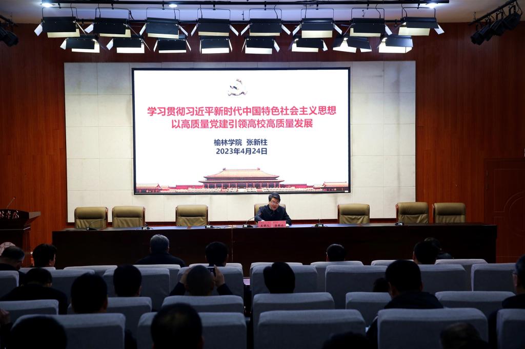 张新柱从五方面阐释了学习贯彻习近平新时代中国特色社会主义思想,以高质量党建引领学校高质量发展。一、习近平新时代中国特色社会主义思想鲜明特点。张新柱说通过梳理和研究习近平总书记党建思想的核心特点,不难发现其思想的全面性、科学性、系统性、协同性,突出了党的建设与党和人民事业的辩证关系,融汇了历史与现实,贯通了理论与实践,联结了治党与治国,体现了继承与创新,具有鲜明的特点。一是党的意识特别强烈;二是治党理念特别清晰;三是群众观点特别鲜明;四是问题导向特别突出;五是队伍建设特别强调。习近平总书记提出“打铁还需自身硬”,要求党员平常时候看得出来,关键时刻站得出来,危及关头豁得出来,用自己的模范行为和高尚人格感召群众、带动群众。二、新时代高校党建工作的基本遵循。一遵循的方向是坚持社会主义办学方向;二遵循的关键是坚持党对高校工作的全面领导;三遵循的方法是坚持围绕中心抓党建,抓好党建促发展;四遵循的基石是坚持党的一切工作到支部的鲜明导向;五遵循的标准是坚持把落实立德树人成效作为检验一切工作的根本标准。习近平总书记强调“教育是国之大计、党之大计。要从党和国家事业发展全局的高度,坚守为党育人、为国育才,把立德树人融入思想道德教育、文化知识教育、社会实践教育各环节,用习近平新时代中国特色社会主义思想教育人,用党的理想信念凝聚人,用社会主义核心价值观培育人,用中华民族伟大复兴历史使命激励人,培养造就大批堪当时代重任的接班人。” 三、高校党建工作存在的问题与困惑。一是对高校党委领导下的校长负责制认识不到位,对实施党委领导下的校长负责制必要性认识不足,对党委领导下的校长负责制的内涵认识不深刻,对党对高校的全面领导贯彻不到位, 两个责任落实不力,即党委主体责任与纪委的监督责任。二是二级学院对党政联席会议的职责不清晰,对“共同负责”的定义认识不清,传统“一家言”观念根深蒂固,议事规程不完善,学术权力弱化,考核、监督不到位。三是高校党支部建设存在薄弱环节,活动载体不丰富。政治功能发挥弱化,组织不力;工作标准矮化,质量不高;党务工作虚化,活动不实;支部书记边缘化,书记不硬。四是党员作用发挥不充分,党员发展、教育、管理不规范。重学生党建,轻教工党建;入党动机考察不深,发展程序不够严谨;党员发展重数量、轻质量;重党员发展前,轻党员发展后。五是党建工作考核机制不健全,考核结果运用不充分。考核标准泛化、内容过于抽象,忽略了实质性的考核;考核评价针对性不强、难以体现工作差异化;考核方式和技术研究不够、需要改进;考核结果运用不足、不令人信服。四、新时代高校党建工作的对策探讨。张新柱指出,推进新时代高校高质量党建工作的对策可以概括为:实施三个带动、抓好四类党建、落实五项措施。一是实施“三个带动”,为学校改革发展提供正确引领。实施“党建带动”,不断增强党的创造力、凝聚力、战斗力;实施“骨干带动”,示范引领党员干部发挥好先锋模范作用;实施“活动带动”,增强党建工作的吸引力和实效性。二是抓好“四类党建”,系统提升新时代高校党建工作水平。抓标准党建。坚持完善党委领导下的校长负责制,抓好二级学院党组织的标准化建设,抓好高校党支部的标准化建设,从“新”、“严”、“实”、“全”上发力,让支部工作“硬起来”、“强起来”、“活起来”、“好起来”,发挥党支部的坚强战斗堡垒作用;抓融合党建。坚持思想融合,强化政治引领。坚持功能融合,强化组织建设。坚持新老融合,强化队伍建设。坚持教研融合,强化立德树人。坚持目标融合,强化党建实效;抓生活党建。科学设置基层组织,让党建工作有广度;关心学生现实生活,让党建工作有温度;打造三全育人生态圈,让党建工作有深度。将党建进公寓,打通育人“最后一公里”,形成全员全过程全方位育人格局;抓特色党建。为学生党支部选派“第一书记”,帮助指导、示范引领。推进师生支部结对共建,开展师生支部“牵手”行动,搭建教工与学生“一帮一”“一对一”模式,助推“三全育人”。探索“触及思想灵魂”的党课新模式,提升党课的吸引力,增强思想性,强化理论武装。三是落实“五项举措”,推动高校党建工作的高质量发展。新时代高校党建工作要做到紧盯政治抓党建、围绕中心抓党建、确定重点抓党建、谋准抓手抓党建、严格考核抓党建。五、以高质量党建引领学校高质量发展。他强调,一要着眼于“教好”“学好”“管好”,切实提高人才培养质量。二要汲取百年办学经验,激情追梦加快建设特色鲜明高水平应用型大学。三要坚持“四个榆林”定位定力,奋力为榆林高质量发展提供智力和科技支撑。四要进一步落实落地追赶超越机制,强力推进学校高质量发展。