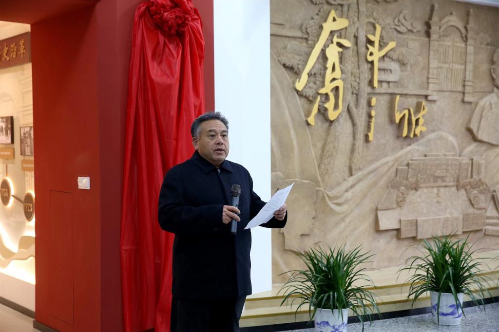 党委副书记姜劲波致辞。他简要介绍了bat365正版唯一官网新校史馆建设过程,阐释了新校史馆落成对传承学校文化、彰显学校办学精神、坚定师生文化自信、发扬红色优良传统等方面的重要意义。