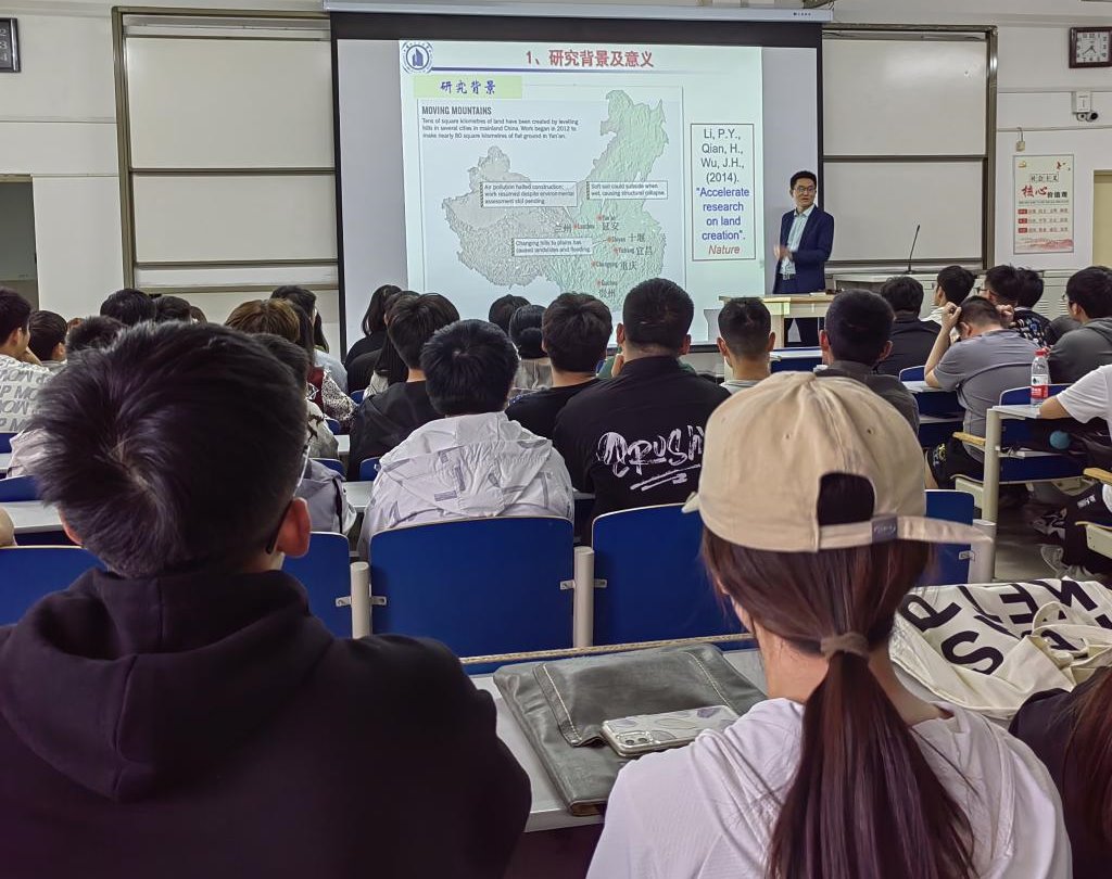 2023年5月3日下午,杰出校友、兰州理工大学杨校辉副教授应邀为建工学院师生作题为“非饱和高填方地基变形和边坡稳定性研究及实践”的学术报告。报告会由科研处、bat365正版唯一官网科学技术协会主办,建筑工程学院承办。建工学院副院长李玉根主持,建工学院部分老师及150余名学生聆听了报告,