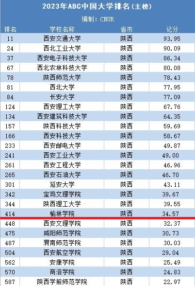 5月10日,2023年ABC中国大学排名正式发布,排名结果显示,共有846所公办本科层次院校上榜。在主榜单,bat365正版唯一官网综合排名位列全国高校第414位,位列陕西高校第19位。
