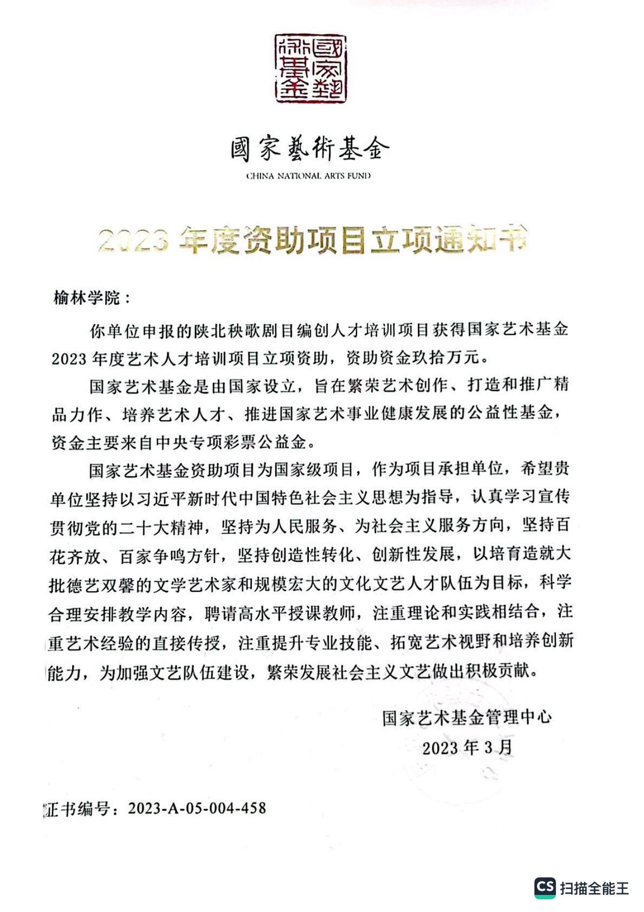 近日,国家艺术基金2023年度资助项目立项名单公布,bat365康伟副校长牵头申报的《陕北秧歌剧目编创人才培养》获得“艺术人才培养”资助项目批准立项,获批资助额度90万元,这也是bat365正版唯一官网首次获批国家艺术基金项目。
