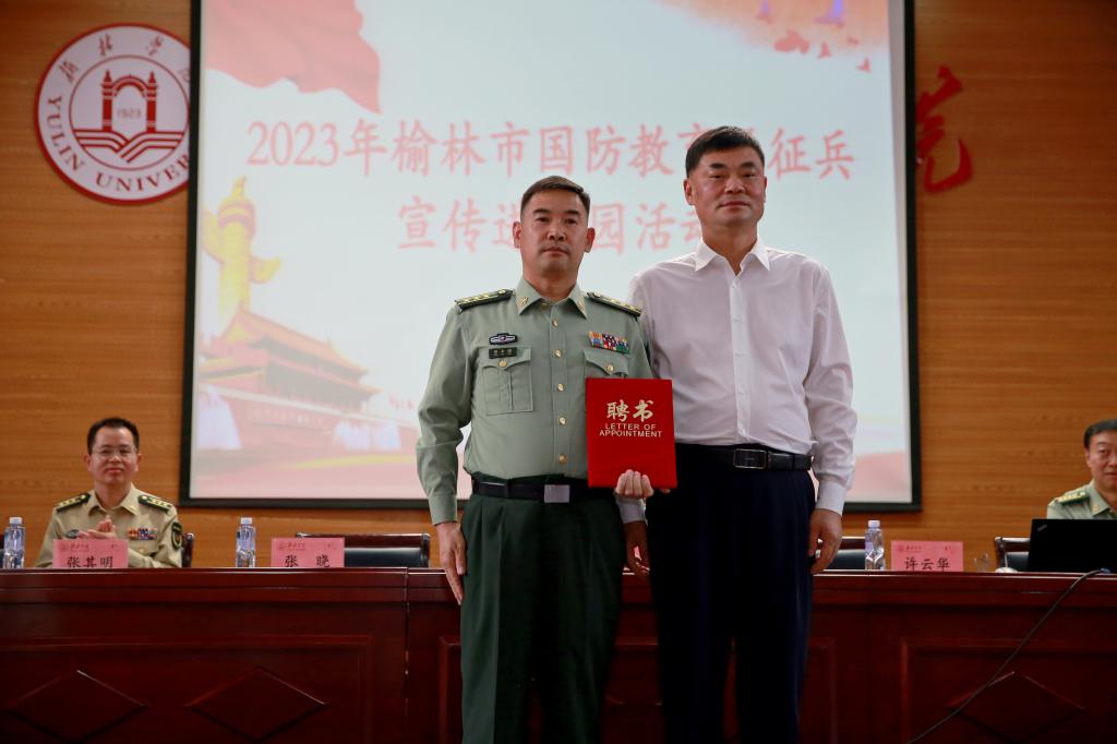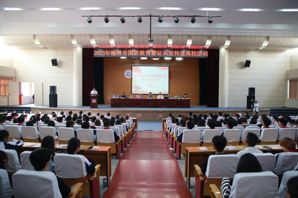 6月6日下午,榆林市国防教育暨征兵宣传进高校活动在bat365图书馆学术报告厅隆重举行。市征兵工作领导小组副组长、军分区大校司令员黄继,市征兵办公室主任、军分区副司令员王中锋,市征兵办公室副主任、军分区动员处上校处长张其明,榆阳区人武部上校政委田玉海,市教育局副局长韩玉红,市委宣传部有关人员;bat365正版唯一官网校长许云华、副校长张晓出席,师生代表430余人参加。