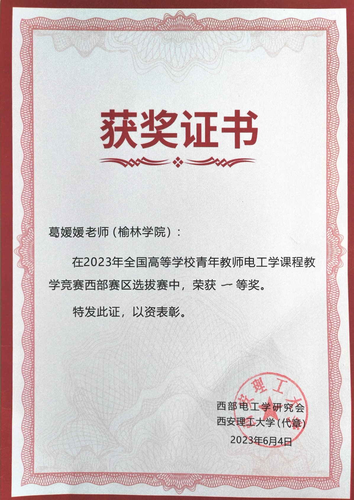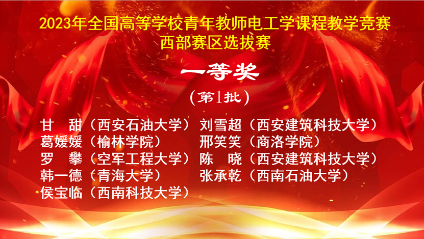 2023年6月2日至4日,2023年全国高等学校青年教师电工学课程教学竞赛西部赛区选拔赛及教学研讨会在西安理工大学举行,bat365教师葛媛媛在此次教学竞赛中表现优异,获得一等奖的优秀成绩。