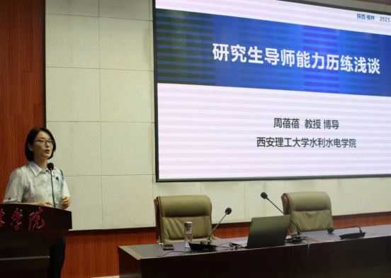 周蓓蓓作了“研究生导师能力历练浅谈”专题报告,围绕如何做一名优秀的硕导、研究生导师能力历练必备技能、培养优秀研究生十条建议等方面进行了深入阐述,结合本人科研经历,分享了研究生如何培养自身科研能力使科研进入良性循环状态的建设性经验。