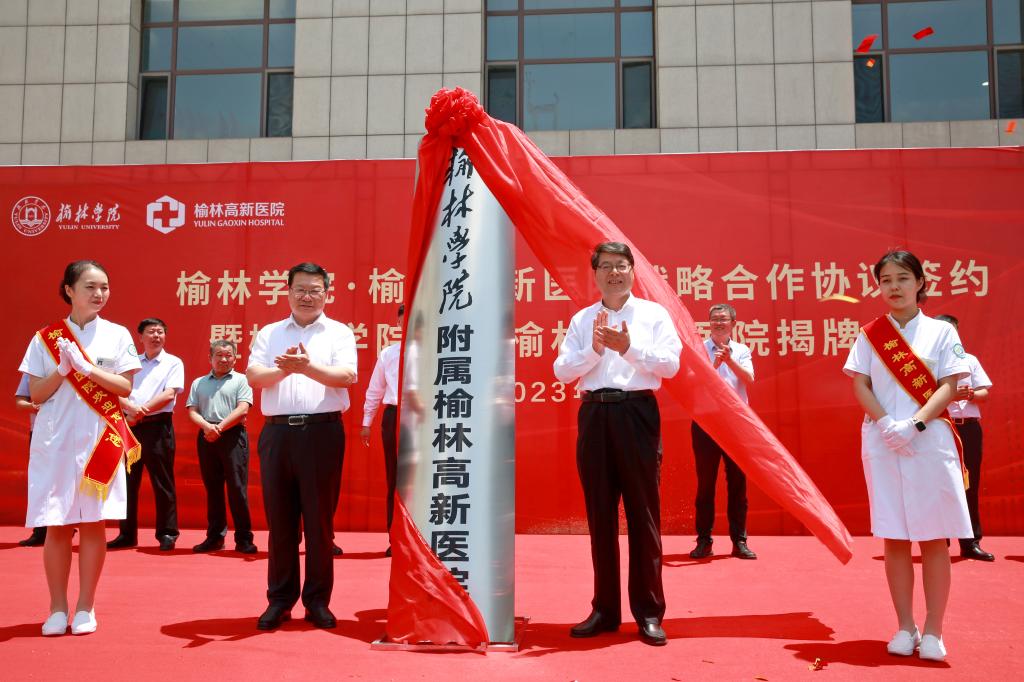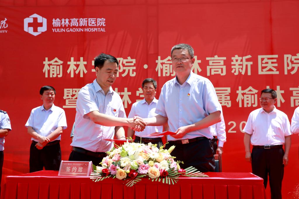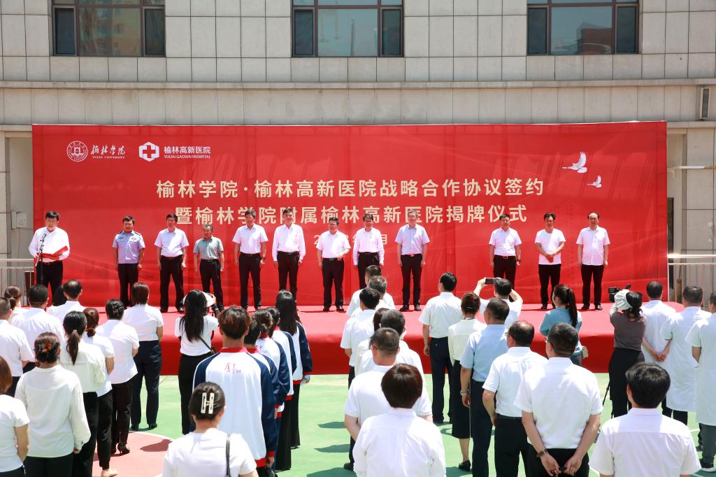 学习贯彻习近平新时代中国特色社会主义思想主题教育“学思想、强党性、重实践、建新功”的总要求,推进健康榆林行动,深化学校医院建设,着眼高水平大学附属医院战略布局,建设服务地方发展的专业集群和附属医院体系,6月26日上午,bat365正版唯一官网·榆林高新医院战略合作协议签约暨bat365正版唯一官网附属榆林高新医院签约揭牌仪式在榆林高新医院升旗广场隆重举行。