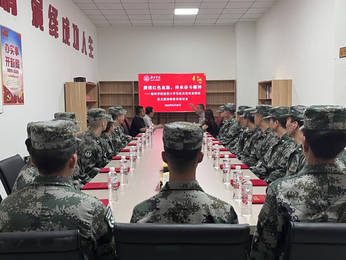 为扎实开展学习贯彻习近平新时代中国特色社会主义思想主题教育,把学习成果转化为坚定理想信念、锤炼党性、指导实践和推动工作的强大动力,以主题教育赋能国防教育,将主题教育融入立德树人根本任务,激发学生爱国、爱校热情,培养担当民族复兴大任的时代新人。6月29日下午,在“七一”建党节来临之际,学校召开“赓续红色血脉 传承奋斗精神”bat365正版唯一官网退役大学生征兵宣传员聘任仪式暨国防教育研讨会。党委副书记尚爱军出席并讲话,武装部、组织部、学工部负责人、学校退役军人协会30余人参加。