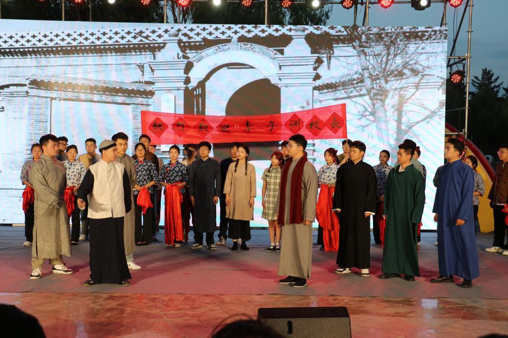 晚会以话剧《绥师开学》拉开帷幕,再现了李子洲到四师就任场景,为观众们上了一堂别开生面的主题党课。《绣金匾》唱出了我们对伟大领袖的缅怀和感恩之情;腰鼓扇子舞《陕北腰鼓绸扇》以欢腾、奔放的形式,舞出了青春的气息和对生活的美好憧憬,也彰显陕北文化特色和陕北人豪迈独特的性格;男女独唱《泪蛋蛋抛在沙蒿蒿林》、《上一道坡坡下一道梁》仿佛再现了那广漠无垠的黄土高原,凝固如波的贫瘠山梁,纵横起伏的蜿蜒沟壑,以及那有别于江南的塞北田野村庄;一首《山丹丹开花红艳艳》炫出了耀眼的“延安红”,也蕴含了黄土地淳朴热烈的韵味,这种天然浑成自然地融入了中国走向民富国强的“韵律”;《赶牲灵》、《再唱山歌给党听》唱出了红色主旋律,以激情昂扬的歌声祝福伟大的祖国;《走三边》、《双拥花开》、《横山里下来些游击队》等耳熟能详的歌曲相继唱响,引起在场听众的强烈共鸣;《陕北大娘》以宛转悠扬的嗓音,唱出浓浓的陕北味,致敬老一辈伟大陕北女性。晚会在大学生艺术团合唱的《这么长的辫子》中将现场气氛推向了高潮。