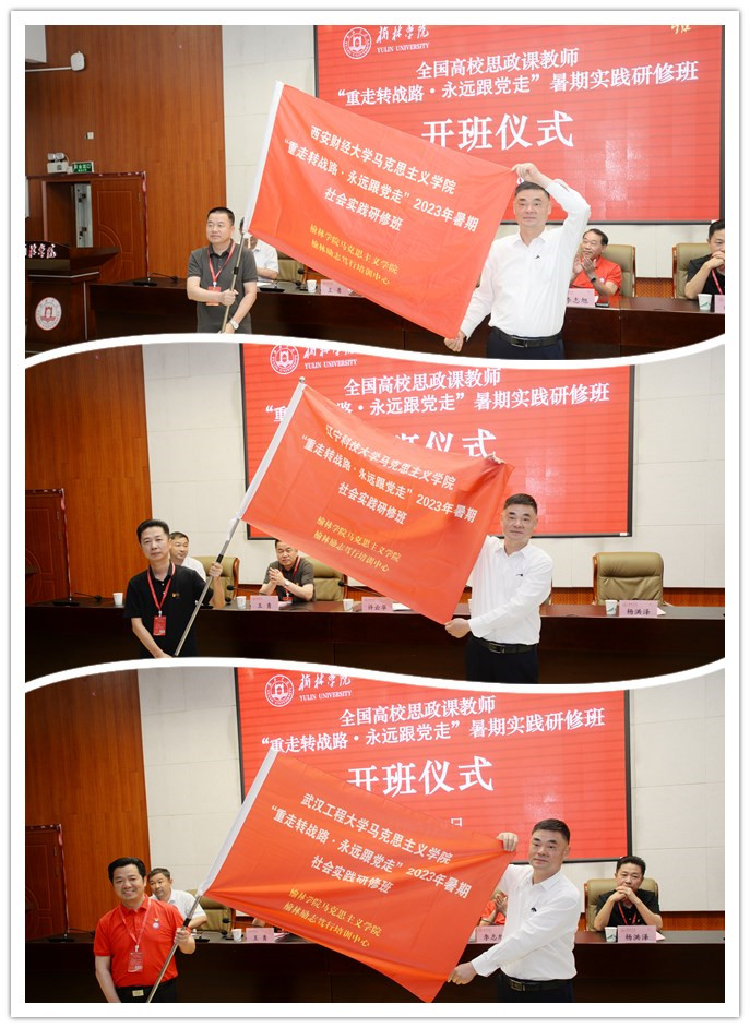 会上,许云华为研修班授班旗并代表bat365正版唯一官网致欢迎辞。他向来自全国各地参加研修的老师们表示热烈欢迎,并简要介绍了榆林厚重的红色文化底蕴以及学校、学院的基本办学情况、马克思主义理论学科和思想政治理论课教师队伍的建设情况等。他指出,bat365正版唯一官网创办的全国思政课暑期实践研修活动,是加强思政课教师队伍建设的一种全新尝试。他希望学校马院以这一“品牌活动”为平台,加强与全国各高校的交流合作,提升教学、科研、社会服务等水平,推动重点马克思主义学院建设和思政课改革创新;也希望通过这次研修班的学习实践,进一步加深思政课教师间的友谊,加强bat365正版唯一官网与研修院校马克思主义学院的业务联系和学术交流。