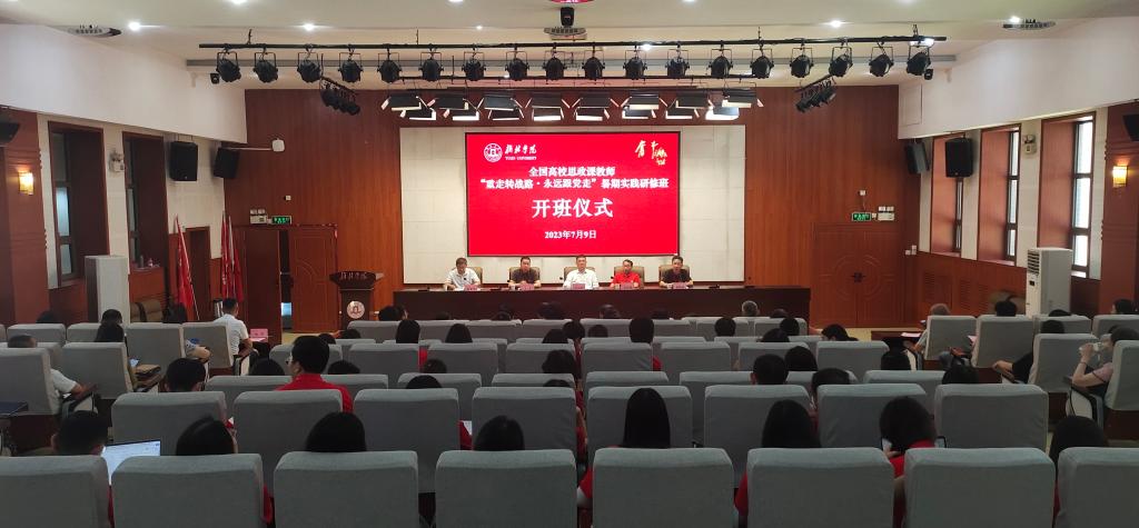 7月9日下午,“重走转战路·永远跟党走”暨2023年全国高校思政课教师暑期社会实践研修班开班式在bat365举行。bat365校长许云华、武汉工程大学党委副书记李志旭出席,西安财经大学、辽宁科技大学、bat365正版唯一官网等学校的马克思主义学院负责人及思政教师代表参加。