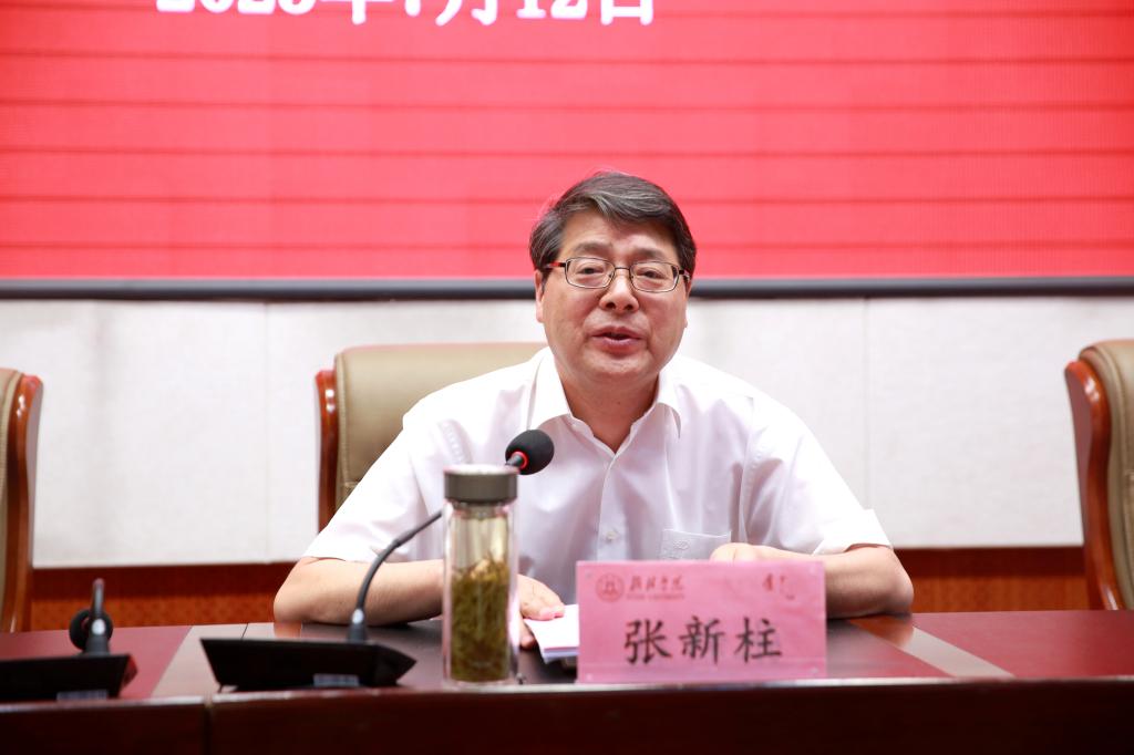 张新柱从七个方面就学习贯彻习近平新时代中国特色社会主义思想主题教育总要求“学思想、强党性、重实践、建新功”进行了阐释,并对学校工作提出要求。他强调,一要大学习,学出新高度。向书本学、走出去学、加强培训学,通过暑期大学习破故步自封圈、入学术行业圈;二要大调研,研出新思路。通过调查研究,集思广益,向研究要出路、向管理要效率;三要大碰撞,碰出新智慧。在学习、研究的基础上碰撞出智慧的火花,点燃激情砥砺前行;四要大谋划,谋岀新的大发展。落实好百年校庆庆典精神和省委书记赵一德书记的讲话、教育部对学校发展提出的要求,意气风发争创一流;五要大转型,转出新的特色。建设现代产业学院和大学科技园,推动学校一流应用型建设;六要大跑三,跑出新的成效。利用暑假继续跑政府、跑企业、跑校友,乘势而上,跑出加速度;七要大提速,提出新的质量。要进一步构建优化解放思想、作风建设、能力提升、追赶超越“四位一体”的高质量发展模式,探索非省会城市地方高校高质量发展实现路径。