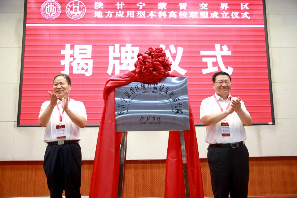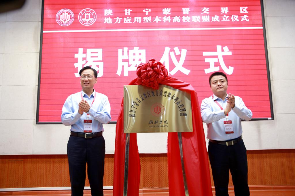 陕西省政协副主席孙科,教育部高等教育司综合处处长高巍巍为陕甘宁蒙晋交界区地方应用型本科高校联盟揭牌