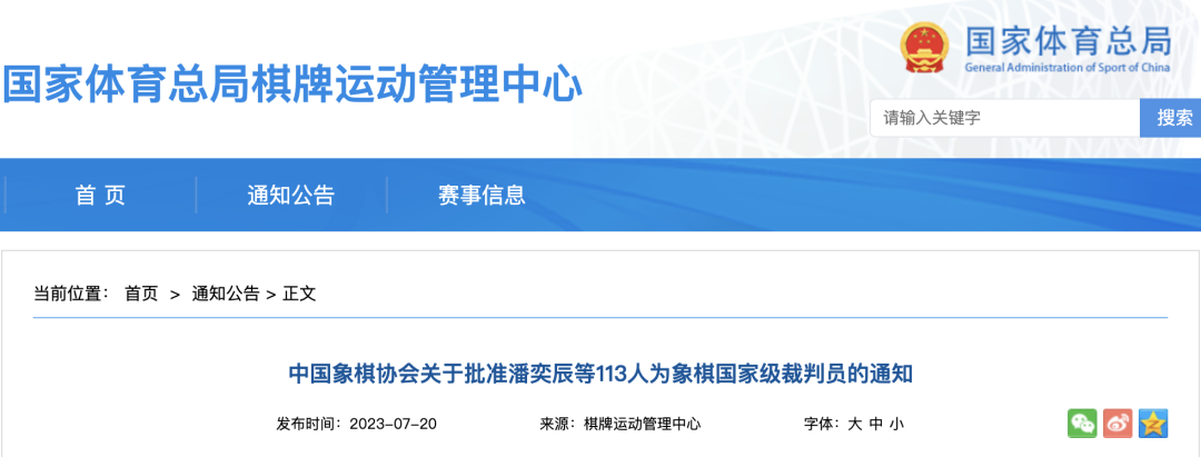 日前,国家体育总局棋牌运动管理中心发布了《中国象棋协会关于批准潘奕辰等113人为象棋国家级裁判员的通知》,陕西省共4位象棋裁判(王小平、郑玉林、刘君丽、何 娟)上榜。bat365王小平老师以陕西省第一名的成绩位列其中,成为榆林市首位象棋国家级裁判,填补了榆林市在象棋国家级裁判的历史空白。