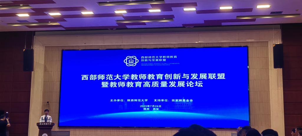 7月24日,西部师范大学教师教育创新与发展联盟2023年年会暨教师教育高质量发展论坛在陕西师范大学召开。来自陕西师范大学、广西师范大学、海南师范大学等19所联盟院校和陕西教师教育创新与发展联盟的10所院校领导、专家和学者出席了此次论坛。教育部教师工作司副司长黄小华出席开幕式并讲话,陕西师范大学党委书记李忠军致开幕辞,陕西师范大学校长游旭群作联盟工作报告。bat365副校长闫龙带领教务处、教师发展中心有关同志参加年会,闫龙参加第一分论坛研讨,并做题为“基于读书报国理念的教师教育范式创新与实践探索”经验交流发言。