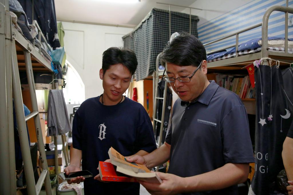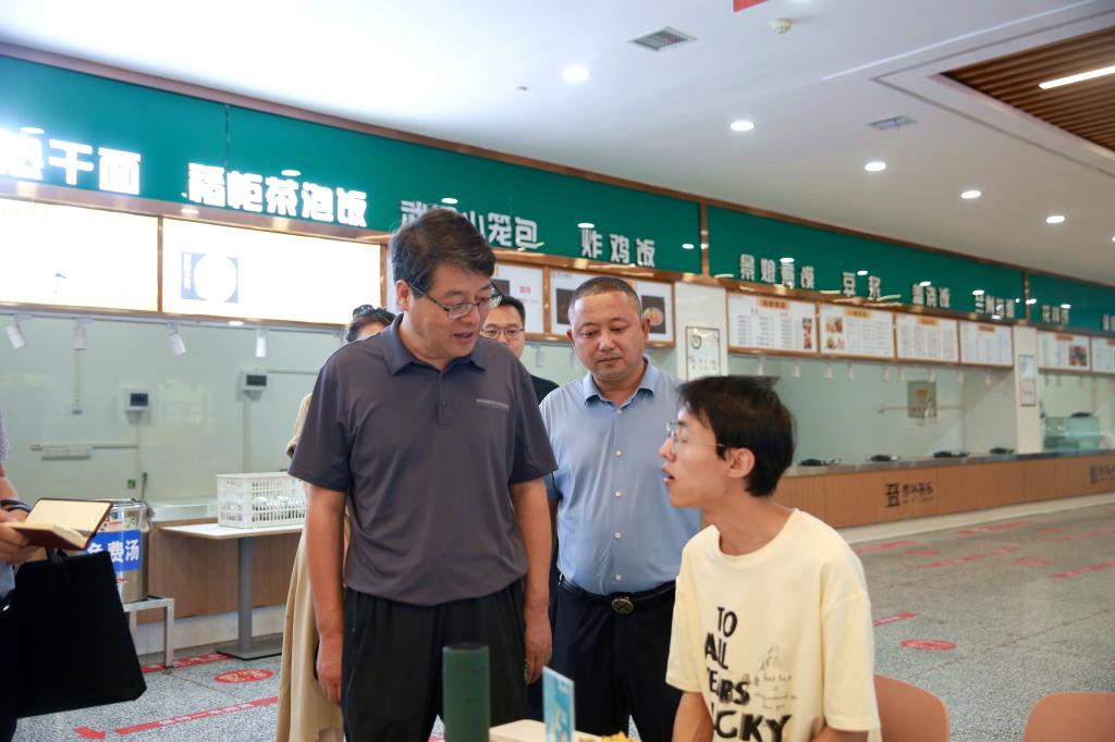 7月30日上午,党委书记张新柱调研指导招生工作,并走访学生公寓、餐厅,与暑期留校学生交流座谈送上纳凉水果。