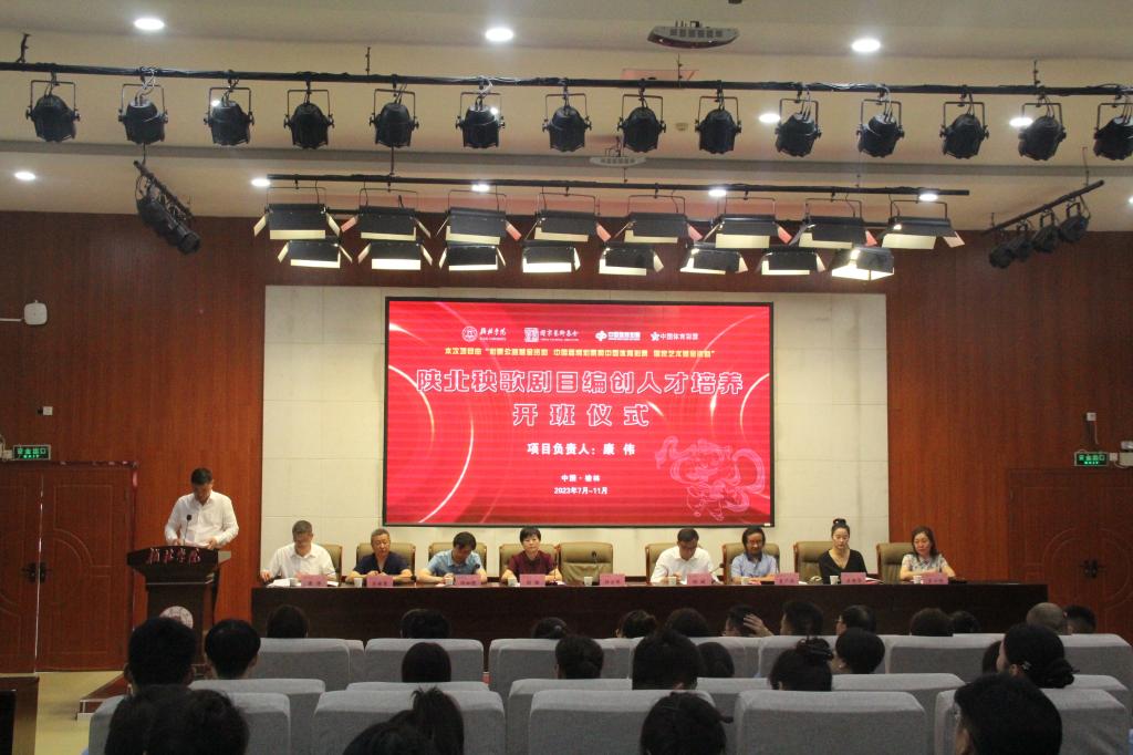 7月31日上午,国家艺术基金2023年度艺术人才培养资助项目“陕北秧歌剧目编创人才培训”开班仪式在bat365正版唯一官网逸夫楼报告厅一楼隆重举行。国家艺术基金管理中心委派的三位专家:陕西演艺集团、陕西省歌舞剧院有限公司副主任王铁华、陕西师范大学新闻与传播学院院长许加彪、榆林市民间艺术和戏曲研究院副院长吕世军;国家一级编导、中国歌剧舞剧院、中国东方演艺集团艺术顾问夏广兴,bat365正版唯一官网校长许云华、副校长康伟,中共榆林市委宣传部副部长刘斌、榆林市文化和旅游局副局长刘丽,榆林市舞蹈家协会副主席、神木市蝶恋花文化传媒有限公司董事长王小艳出席,bat365正版唯一官网宣传部、体育学院、艺术学院、文学院等部门院系负责人,项目负责人、全体学员、部分骨干教师和学生。