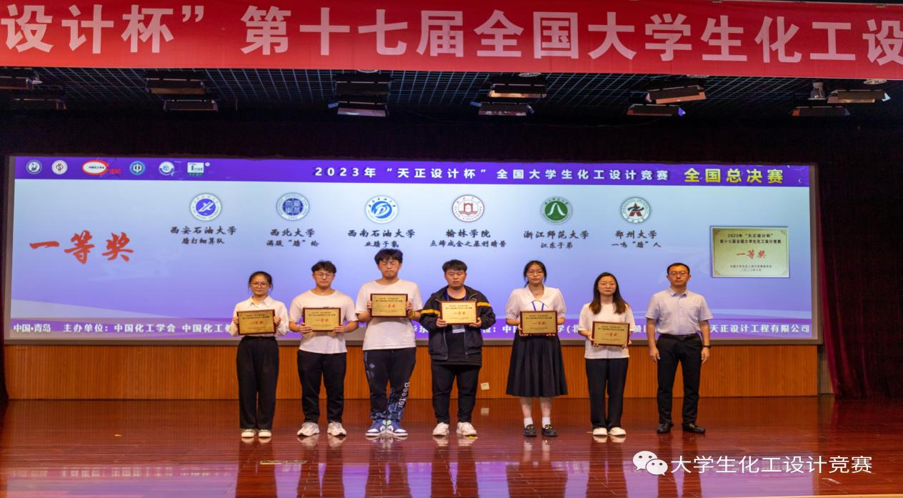 今年3月第十七届全国大学生化工设计竞赛启动以来,学校高度重视,化学与化工学院选派优秀指导老师,组建专家团队为同学们答疑解惑。经过校内培训,省赛选拔,由杨永林、亢玉红、常春然、李健和李红亚5位老师指导的“中石化上海石化年产21万吨己二腈”项目脱颖而出,先后取得陕西省省赛特等奖和西北赛区特等奖,并代表西北赛区参加全国总决赛。经过设计文档质量,工程图纸绘制,现代设计方法应用、现场汇报、答辩等环节的比拼,最终获得全国总决赛一等奖。