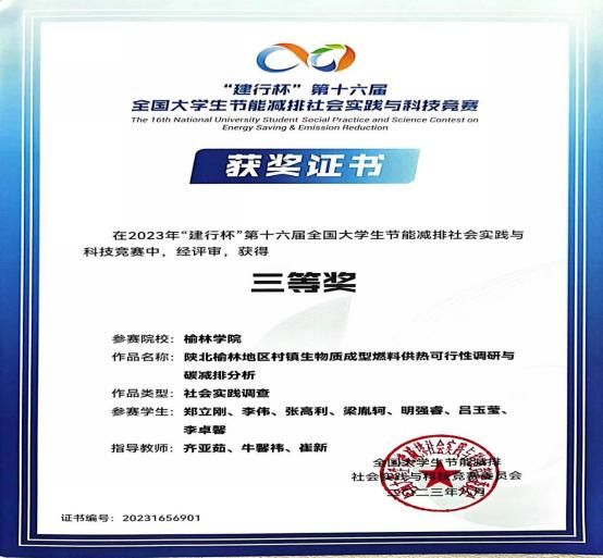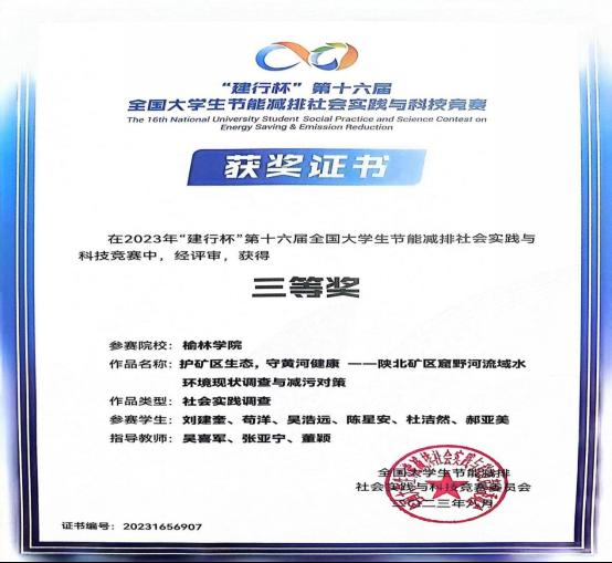 8月1日-3日,“建行杯”第十六届全国大学生节能减排社会实践与科技竞赛决赛在东南大学落下帷幕。经过网评、会评和决赛等阶段的层层选拔,由齐亚茹、牛馨祎、崔新老师指导,郑立刚、李伟等同学完成的作品《陕北榆林地区村镇生物质成型燃料供热可行性调研与碳减排分析》与由吴喜军、张亚宁、董颖老师指导,刘建奎、苟洋等同学完成的作品《护矿区生态、守黄河健康—陕北矿区窟野河流域水环境现状调查与减污对策》荣获大赛三等奖,取得该项赛事bat365的历史性突破。