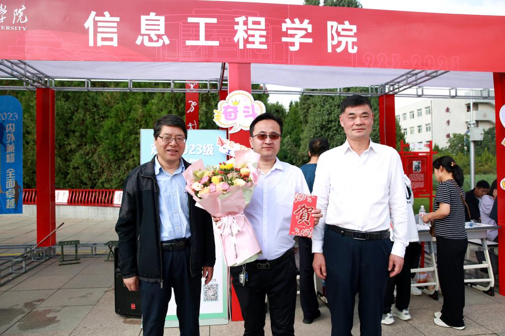 在奋斗广场,各具特色的院系迎新报到点依次排开,热闹非凡。张新柱和许云华来到信息工程学院接待点前,与张峰教授亲切交流。张新柱向他们送上节日的祝福并祝贺张峰教授团队荣获2023年度陕西高等学校科学技术研究优秀成果一等奖的好成绩,勉励他们面向需求,坚持技术创新,在新时代为地方发展作出bat365正版唯一官网的贡献。