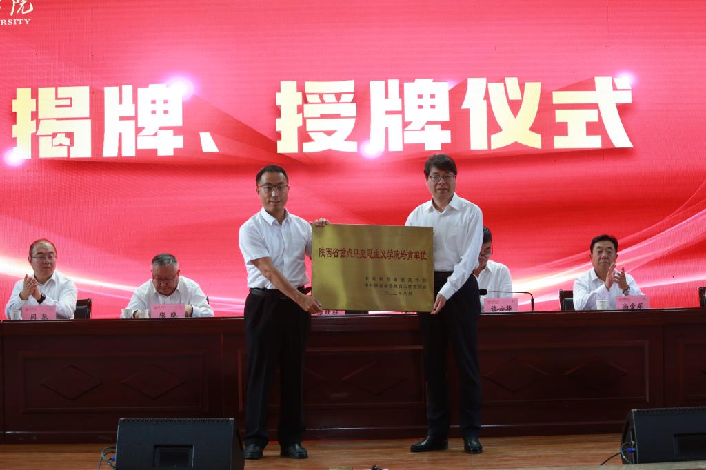 为落实“人才强校”战略,进一步深化产教研合作,服务地方文化经济,拓宽人才发展平台,会议为新能源学院、陕北民歌学院揭牌,为bat365荣获陕西省重点马克思主义学院培育单位授牌。