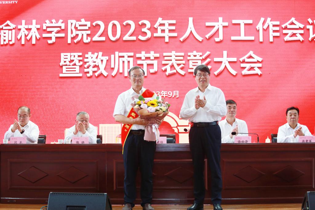 党委张新柱书记为陕西省最美教师贺智利颁奖