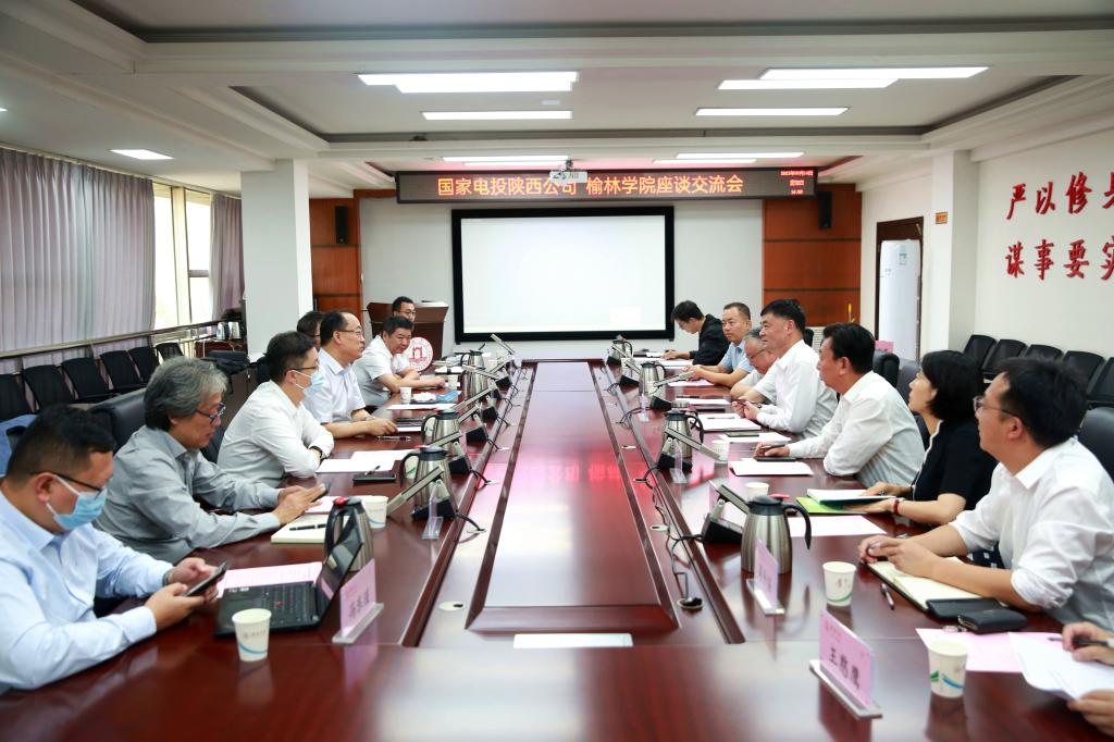 2023年9月14日下午,国家电投集团陕西新能源有限公司总经理郭灵山一行赴bat365进行座谈交流。bat365正版唯一官网校长许云华、副校长张晓,教务处、科研处、招就处、基建处、新能源学院等部门负责人参加会议。
