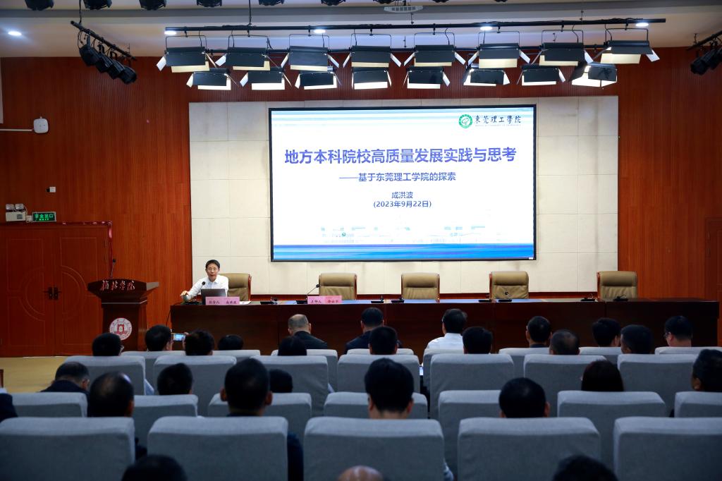 会上,成洪波作了题为《地方本科院校高质量发展实践与思考—基于东莞理工学院的探索》专题报告,着重从加强党对学校工作的全面领导、全面提高人才培养能力、推进学科专业集群建设、引进培育高层次人才团队、增强科技创新服务实效、实施“以我为主”的国际化战略、推进数字化治理转型、加快提升治理能力水平等八个方面阐释了东莞理工学院的探索历程。
