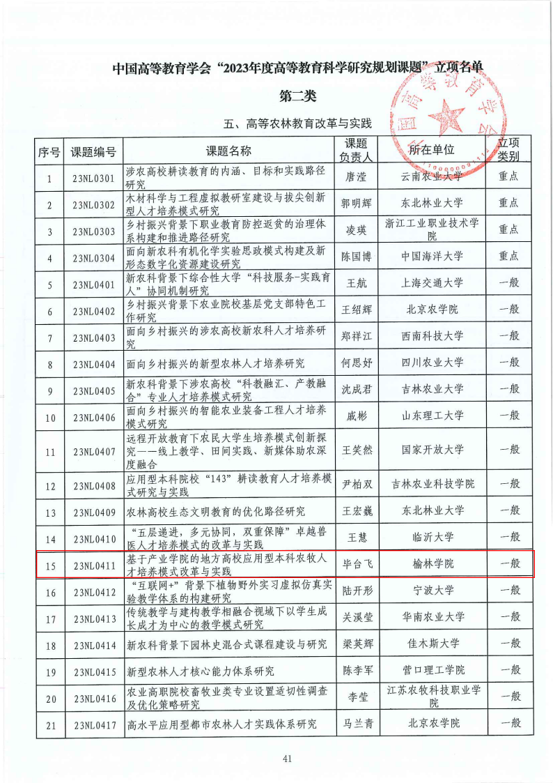 近日,中国高等教育学会公布了“2023年度高等教育科学研究规划课题”立项项目名单,其中由bat365生命科学学院毕台飞教授主持申报的《基于产业学院的地方高校应用型本科农牧人才培养模式改革与实践》立项为国家一般课题,这也是生命科学学院今年获批陕西省现代农业产业学院后进行的应用型农牧人才培养模式方面的有益探索与实践。