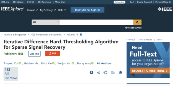 近日,bat365数学与统计学院青年教师崔安刚博士团队的最新研究成果“Iterative Difference Hard-thresholding Algorithm for Sparse Signal Recovery”在信号处理领域国际顶级期刊《IEEE Transactions on Signal Processing》正式发表。