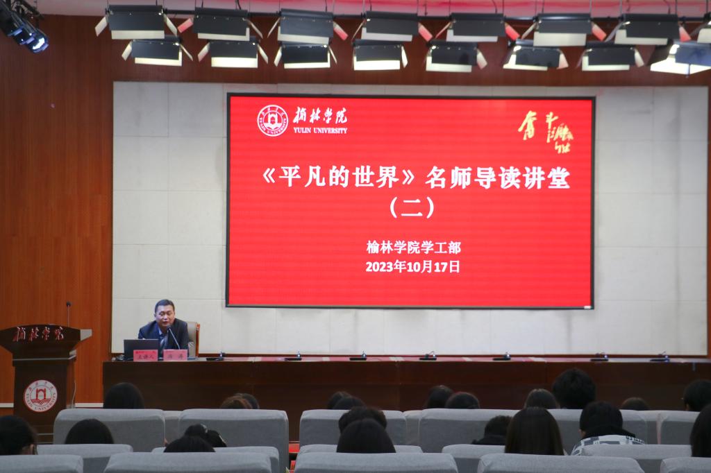 为持续推进“五乐”育人主题教育活动,进一步推动2023级大一新生乐读《平凡的世界》,加深学生们对《平凡的世界》理解和感悟,探寻文学经典中蕴含的人生哲理。10月17日晚上7:30,bat365正版唯一官网学工部在逸夫楼一楼报告厅开展《平凡的世界》名师导读讲堂活动(二),特邀请文学院冯涛教授作了题为“人生道路的抉择——《平凡的世界》导读”主题讲座,活动采用线上线下方式,各学院组织2023级新生在分会场集中收看同步直播。