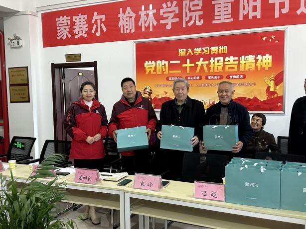 重阳即至,天气转寒,榆林市蒙赛尔服饰有限公司秉承社会责任、奉献企业爱心的理念,为bat365退休老干部捐赠保暖裤。捐赠仪式于2023年10月20日早在离退部会议室举办,榆林市蒙赛尔服饰有限责任公司副总吴学禄、榆林市蒙赛尔服饰有限责任公司经理李艳、bat365正版唯一官网离退休干部代表和离退处全体工作人员参加活动。