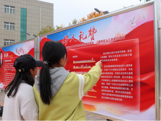 薪火弦歌,赓续传承。此次专题展览吸引了广大师生前来参观学习。一个个鲜活的形象、动人的故事,不仅让师生更好地了解了各级各类道德模范和身边好人的感人事迹,更激发了师生参与新时代文明实践服务的热情。“榆林好人”信仰坚定、牢记使命、勇于担当、全心全意为人民服务的精神震撼着广大师生的心灵,为不断提高人们的道德素质和社会文明程度奠定了良好的基础,同时为新时代公民道德建设的实施指明了方向。