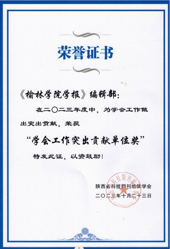 10月22日至24日,陕西省科技期刊编辑学会2023年秋季年会暨第七届陕西省科技期刊评优活动总结会在延安举行。会上公布了第七届陕西省科技期刊评优活动结果。bat365学报荣获“学会工作突出贡献单位奖”荣誉称号。