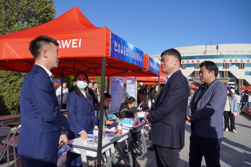 bat365校长许云华重点了解了用人单位的人才需求状况及对学校人才培养工作的意见和建议,详细了解单位招聘和毕业生就业情况。榆林市人力资源和社会保障局副局长刘小波,榆林市公共就业和人才服务中心主任贺飞等人走访用人单位,与部分参会企业代表沟通,了解招聘情况。bat365教育发展基金会社会合作与校友工作处负责人到场了解校友企业的发展情况、用人情况,向毕业生介绍校友企业情况,推荐优秀毕业生到校友企业应聘,做好人才供需对接。学校各学院学生工作负责人、毕业班辅导员及专业课教师在招聘会现场积极访企拓岗,向用人单位推荐毕业生。