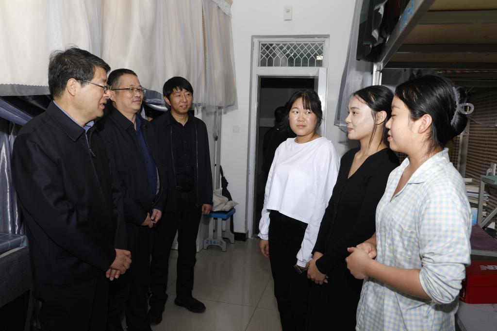 10月29日上午,党委书记张新柱到绥德师范校区调研指导工作,走进新生宿舍并与同学们亲切交流,耐心问询学生在校学习情况、家庭生活情况、食宿情况以及学习生活中存在的困难。听到学生提出的合理意见和建议时,张新柱要求校区及时拿出整改措施,尽力满足学生的期盼和需求。