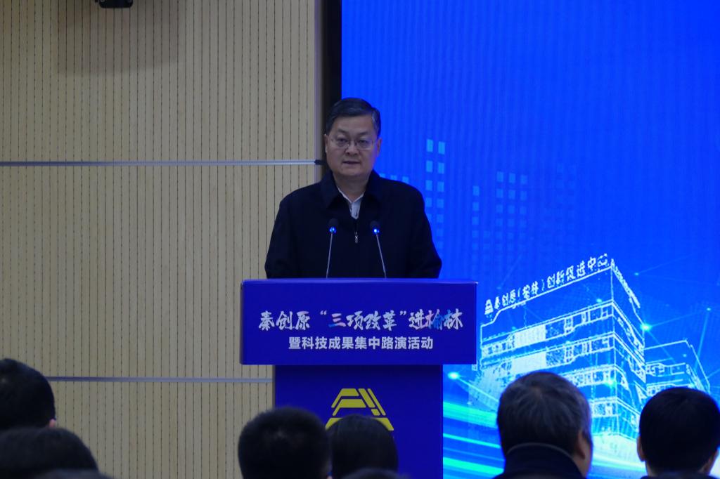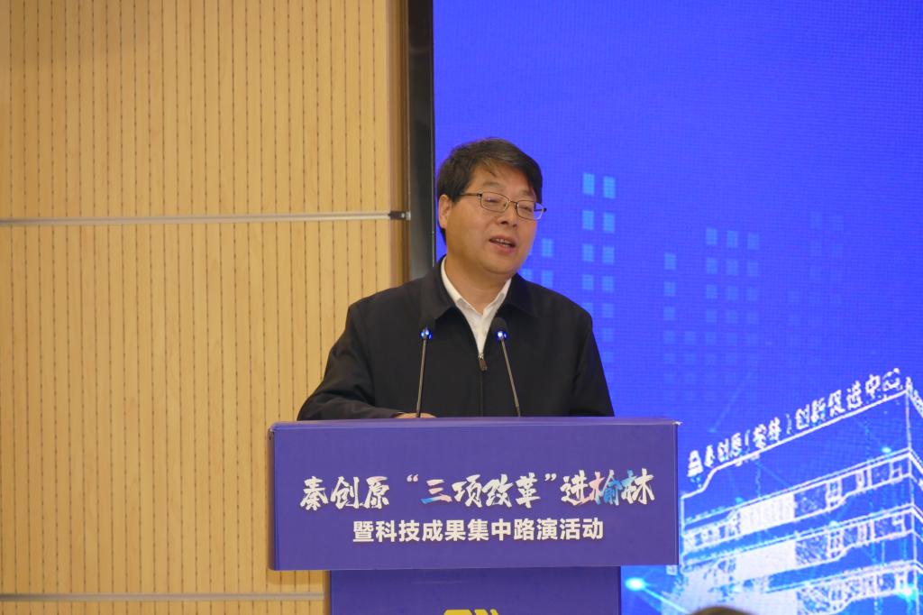 为持续深化科技成果转化“三项改革”试点,推进秦创原能源革命创新示范区建设,陕西省科技厅、榆林市政府于11月10日在榆林秦创原大厦举办秦创原“三项改革”进榆林暨科技成果集中路演活动。省科技厅副厅长王军、榆林市委副书记李雄斌及bat365党委书记张新柱出席并致辞。榆林市科技局主持工作局长乔东介绍了榆林市三项改革和秦创原推进情况。省科技厅区域处长夏学礼及政策处副处长杨凯参加。