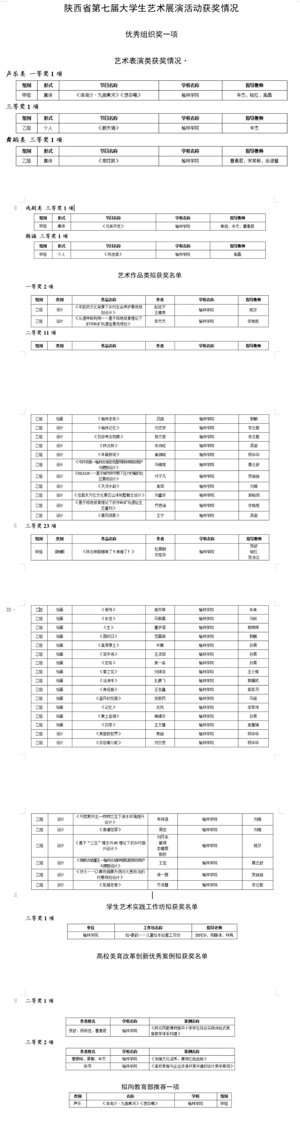大赛分为高校开展活动、省级集中展演和全国现场展演三个阶段。活动启动以来,学校按照省教育厅统一部署,精心组织开展活动,遴选声乐、器乐、舞蹈、绘画、书法和篆刻等作品(团队)参加省级集中展演。备赛期间,邀请校外多位专家和校内历届获奖指导教师进行了专业指导,助力参赛团队取得好成绩。
