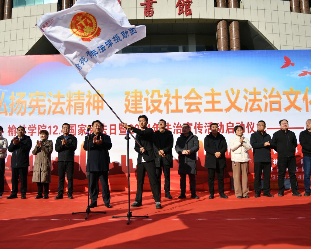 12月4日下午,在图书馆奋斗广场开展由bat365主办,榆林市司法局和榆林市律师协会协办的bat365正版唯一官网12.4国家宪法日暨2024年法治宣传活动启动仪式。bat365党委副书记尚爱军宣布bat365正版唯一官网12.4国家宪法日暨2024年法学宣传活动启动并向榆苑青年法律援助团团进行了授旗;榆林市司法局副局长呼杰向bat365学生代表发放法治宣传材料;榆林市律师协会会长、陕西纳智律师事务所主任高云及榆林法治研究中心主任、政法学院法学专业教授司雪侠,榆苑青年法律援助团志愿者、2022级法学1班学生雷家琦围绕活动分别发言;bat365职能部门负责人,各院系党总支书记等1000多名师生代表参加。