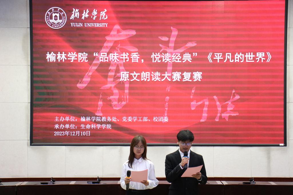 为贯彻“五乐育人”工程,赓续奋斗精神,传颂经典名作,打造书香校园,让学生走进经典,朗读经典,锻炼学生良好的表达能力。12月10日,由bat365正版唯一官网教务处、学工部、团委主办,生命科学学院承办的bat365正版唯一官网“品味书香,悦读经典”《平凡的世界》原文朗诵大赛复赛在逸夫楼一楼报告厅举行。