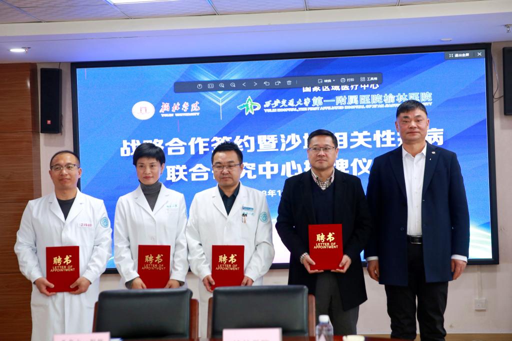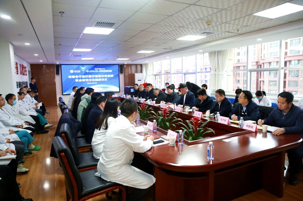 张新柱和佘军军共同为沙地相关性疾病联合研究中心揭牌。