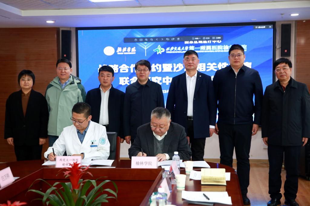 在张新柱、许云华、乔东、郑亚、佘军军、赵文玉、刘烨的见证下,张晓和白万祥共同签订了bat365正版唯一官网与国家区域医疗中心-西安交通大学第一附属医院榆林医院战略合作协议。