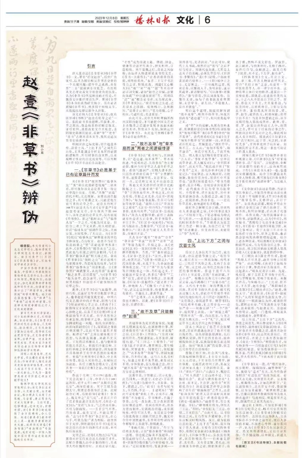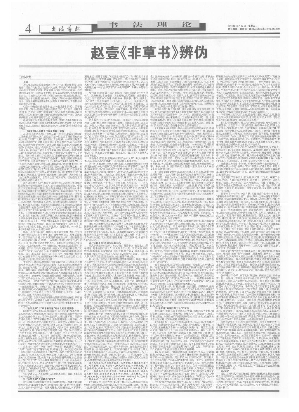 bat365艺术学院党总支书记、副院长刘小龙《赵壹〈非草书〉辨伪》一文刊于《书法导报》第47期(2023年11月22日)第四版。该文发表后,书法理论及文艺界的专家学者给予高度肯定和评价。2023年12月8日被《榆林日报》删节后转载。