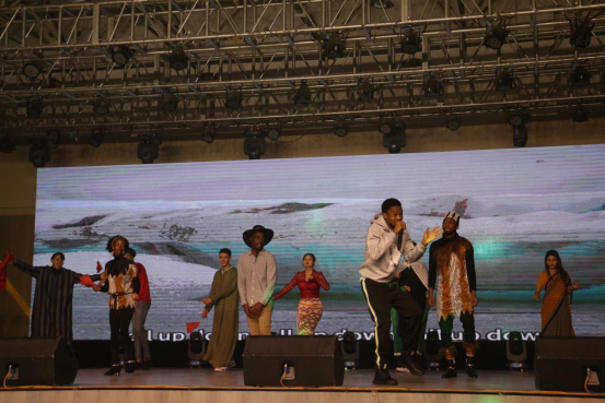 舞台上,由李子洲大学生艺术团带来的国际及非遗文化遗产陕北腰鼓开场,热情洋溢,引燃全场;利比里亚留学生David带来的歌曲独唱《A new day has come》温婉动听;藏族舞《弦子》将我们拉回到青藏高原之上,感受藏族的地域特色;留学生Shara、Sofian带来的孟加拉舞柔美灵动;国际处教师代表及学生代表共同朗诵的多语种《当你老了》让我们感受不同语言的魅力;“服章之美谓之华,有礼仪之大故称夏”,精彩的汉服表演秀展现了中华传统服饰之美;“和羹之美,在于合异”,由全体留学生带来的歌曲合唱《calm down》热情奔放;信工院教师叶培顺的独唱《卓玛》唯美悠扬;歌舞表演《唱支山歌给党听》表达了榆苑奋斗青年对祖国的感恩和热爱;“渔舟唱晚,响穷彭蠡之滨,雁阵惊寒,声断衡阳之浦”,教育学院教师杨阳及学生代表带来的古筝合奏《渔舟唱晚》悠扬动听,令人置身其中,感受江南的宁静与美好;活动在藏族歌曲《走出大山的孩子》中落下帷幕。