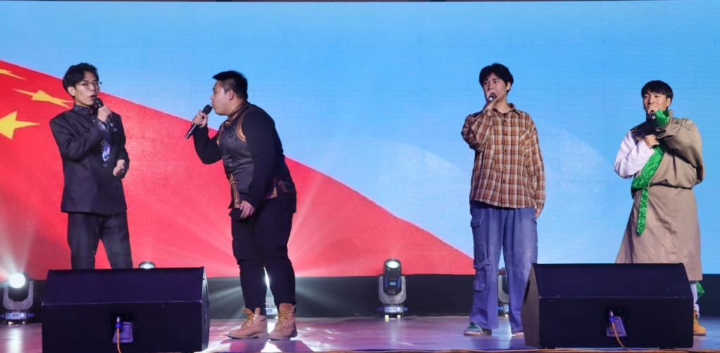 由罗布占堆(藏族)、巴哈德尔(维吾尔族)、淡喜廉(蒙古族)、许青博(汉族)四位同学为大家带来的精彩歌曲联唱《民族大团结》,展现了各民族欢聚一堂,其乐融融,团结互助的和谐氛围。