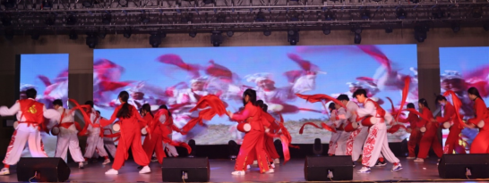 随着铿锵的鼓点撞击心扉,由艺术学院黄土地腰鼓社团带来的《欢庆腰鼓》彩绸欢舞,鼓动天地。