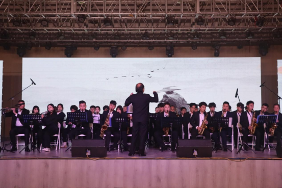艺术学院管乐团用《铁血丹心》、《世间终始你好(华山论剑)》、《勇往直前进行曲》等精彩的管乐合奏曲拉开晚会序幕,一曲曲管乐合奏高亢激昂,节奏流畅,让在场观众沉醉在高雅的管乐世界里,展示了艺术学子的青春风采和爱国热情。