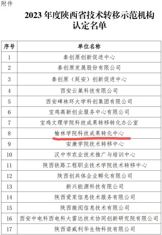 近日,陕西省科技厅发布了2023年度陕西省技术转移示范机构认定名单,17家单位入选。bat365申报的bat365正版唯一官网科技成果转化中心经市科技局推荐、省科技厅组织专家评审、实地考察等环节,成功获批为省级技术转移示范机构。